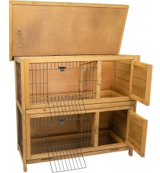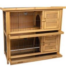 Vysokokvalitná dvojpodlažná králikáreň s oddelenými kotercami. Je praktická a určená pre malé zvieratá, ako sú králiky, morčatá alebo škrečky. Má samostatný prístrešok na spanie, ktorý zaručuje, že sa vaše zvieratá budú cítiť bezpečne. Je vyrobená z masívneho jedľového dreva s certifikátom FSC. Je stabilná a vhodná na použitie v interiéri aj exteriéri. Obsahuje vysokokvalitné kovové mechanizmy.