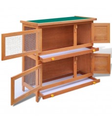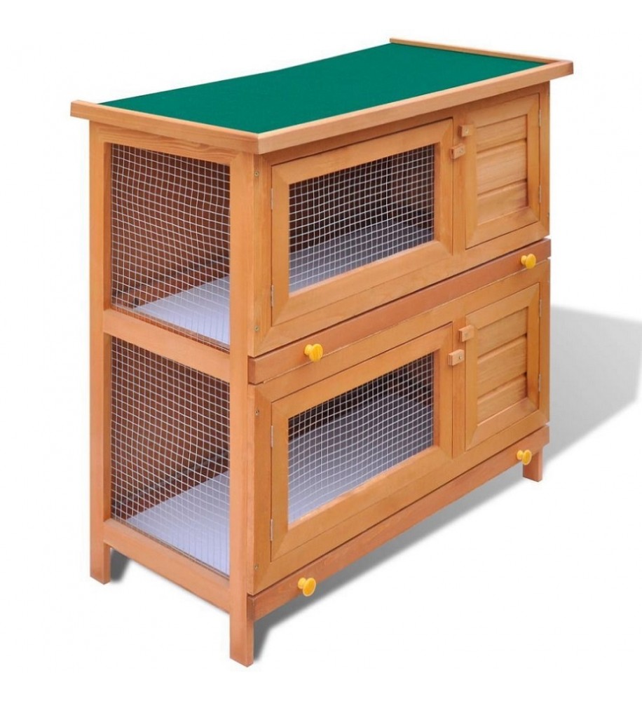 Táto dvojpodlažná králikáreň poskytuje útulné miesto na chov malých zvierat, najmä roztomilých malých králikov. Poskytuje vašim zvieratkám dostatok priestoru na pohyb. Výplň z pozinkovaného drôtu zabezpečuje sledovanie zvierat a poskytuje vašim zvieratám dobrý výhľad na okolie a dostatok čerstvého vzduchu. Králikáreň je vyrobená z kvalitného dreveného rámu, takže poskytuje pevný a bezpečný prístrešok, ktorý dlho vydrží. Jej zelená strecha chráni pred dažďom a útulný pelech vo vnútri je skvelý na spanie. Dve výsuvné zásuvky uľahčujú čistenie. Dvere sa ľahko zatvárajú a dajú sa zaistiť posuvnou západkou. Vďaka tomu je táto králikáreň ideálna pre malé domáce zvieratá.