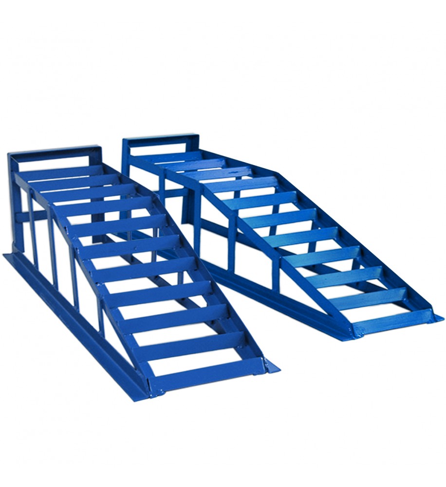 Vysokokvalitné pevné železné rampy v modrej farbe s nosnosťou 2000 kg/pár, 2 tony. Jedna rampa má nosnosť 1000 kg, 1 tona. Jednoduchá manipulácia vám umožňuje meniť auto alebo vykonávať rôzne úpravy auta či stroja.