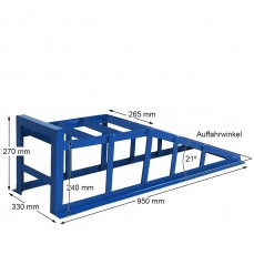 Každá rampa obsahuje je 11x pevnú horizontálnu priečku a 8x pevnú vertikálnu priečku. Uhol rampy je 21 stupňov. Šírka rampy na pneumatiky je 265 mm. Na týchto rampách môžete používať aj širšie pneumatiky. Je to tak, že širšie rampy sa cítia lepšie nosnosť je rovnaká 2 tony na pár.