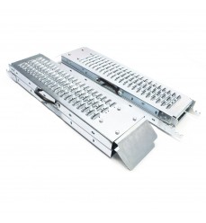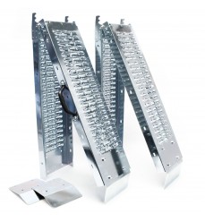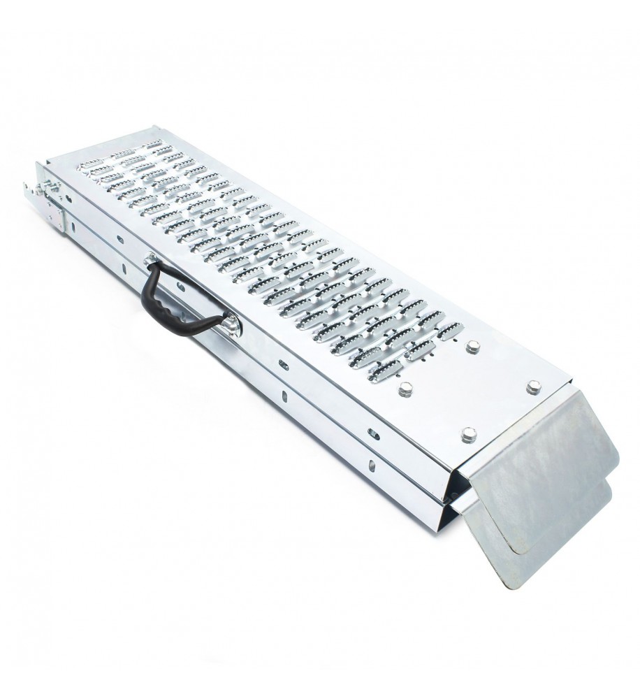 Rampa obsahuje 2x oceľovú západku, ktorá zabezpečuje stabilné a jednoduché nakladanie. Celý povrch rampy je špeciálne vyrazený, aby zabezpečil protišmykový a odolný povrch. S rampou dokáže bez väčšej námahy manipulovať jedna osoba.
