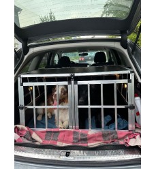 Tento dvojitý hliníkový prepravný box je ideálnym nástrojom na bezpečnú prepravu vášho domáceho maznáčika autom.