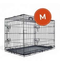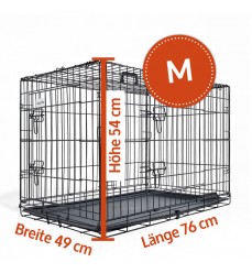 Skladací box veľkosti M pre majiteľov domácich zvierat slúži ako prístrešok a úkryt pre psy, mačky a malé zvieratá. Ideálna na výcvik šteniat doma, pri kempovaní alebo cestovaní autom. Box je vybavený pevnými železnými tyčami a vďaka svojej kompaktnej konštrukcii je mimoriadne stabilný. Čierny práškový náter zabráni vzniku hrdze.