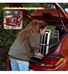 Vďaka tomuto hliníkovému prepravnému boxu môžete teraz svojho najlepšieho psieho priateľa jednoducho a rýchlo vziať všade so sebou. Box chráni posádku auta aj vášho psa. Domáci miláčik sa v boxe cíti úplne bezpečne.