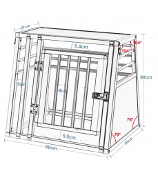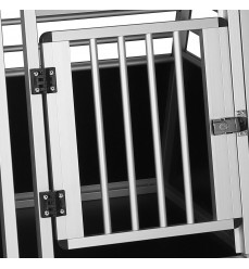 Pevný hliníkový prepravný box do menších kufrov auta, pre stredné plemená psov do 25 kg. Je to ideálny nástroj na bezpečnú prepravu vášho domáceho maznáčika autom. Ideálne, jednoduché a ľahké umiestnenie do kufra - vďaka skosenej zadnej stene klietky ju môžete umiestniť presne za zadné sedadlá bez nevyužitej medzery medzi sedadlom a klietkou.