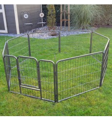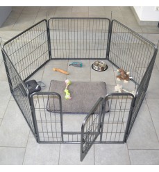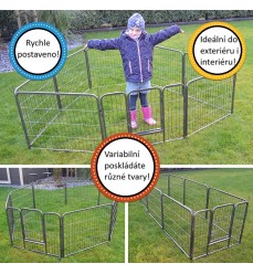 Kvalitný výbeh, ohrádka pre psov a iné zvieratá. Má široké možnosti použitia pre vnútorné aj vonkajšie použitie. Možnosť postaviť si akýkoľvek tvar, ktorý vám najviac vyhovuje. Jednotlivé diely sa dajú jednoducho spojiť pomocou tyčí vložených zhora cez spoje. Vo vonkajšom prostredí možno tyče jednoducho zapichnúť do zeme a upevniť tak celú ohradu.