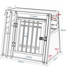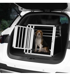 Pevný hliníkový prepravný box do menších kufrov auta, pre stredné plemená psov do 25 kg. Je to ideálny nástroj na bezpečnú prepravu vášho domáceho maznáčika autom. Ideálne, jednoduché a ľahké umiestnenie do kufra - vďaka skosenej zadnej stene klietky ju môžete umiestniť presne za zadné sedadlá bez nevyužitej medzery medzi sedadlom a klietkou. Vhodná do väčšiny vozidiel typu hatchback, sedan a menších SUV. Vhodná pre bígla, francúzskeho buldočka, malého teriéra, corgiho, jazvečíka a ďalšie.