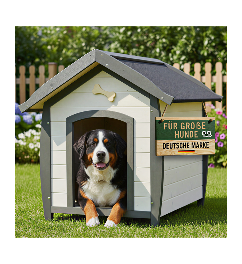 Kvalitná pevná búda pre psov z jedľového dreva vyvýšená na nožičkách. Odolná voči poveternostným podmienkam. Rozmery: šírka 78 cm, hĺbka 87 cm, výška 82 cm.