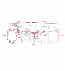 Ratanová pohovka je ideálna na príjemné posedenie na terase. Skladá sa z rohovej pohovky a stolíka s doskou z dreva Artwood. Elegantný nadčasový štýl ratanového nábytku, odolnosť a jednoduchá údržba zaručujú, že sa z tejto súpravy budete tešiť dlho. Odolný a stabilný voči UV žiareniu - nevybledne.