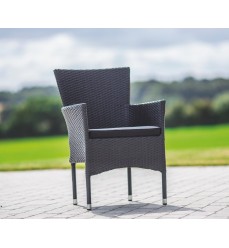 Užite si dlhé letné večery v záhrade. Oceníte vysoké operadlo a vysoký stôl, vďaka ktorým môže pohodlne stolovať aj celá rodina. Uvítate aj mäkkosť kvalitného čalúnenia, ktoré zaisťuje veľké pohodlie. Konštrukcia je vyrobená z pevnej nehrdzavejúcej ocele a ručne pletený umelý ratan je odolný voči vode.