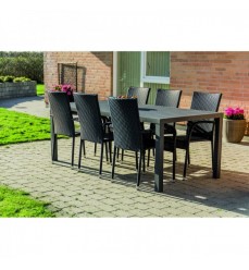 Bezúdržbový jedálenský stôl vyrobený z hliníkovej konštrukcie a dosiek z atrwood. Vhodný až pre 8 osôb. Rozmery: šírka 205 cm, hĺbka 90 cm, výška 74 cm.
