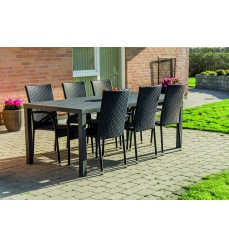 Stoličky sú stohovateľné, takže ich môžete veľmi pohodlne uložiť do jedného stohu. Ušetríte tak veľa miesta. Stolička je ručne opletená umelým ratanom, ktorý je pohodlný, odolný a bezúdržbový. Je teda odolná voči mrazu, dažďu a slnku. Je odolný voči UV žiareniu, takže sa nemusíte obávať, že by časom zmodral. Môžete ho nechať v záhrade po celý rok. Nábytok vydrží dlhodobé zaťaženie, a preto je vhodný aj do reštaurácií a kaviarní. Vďaka svojej neutrálnej farbe sa hodí k rôznym typom nábytku.