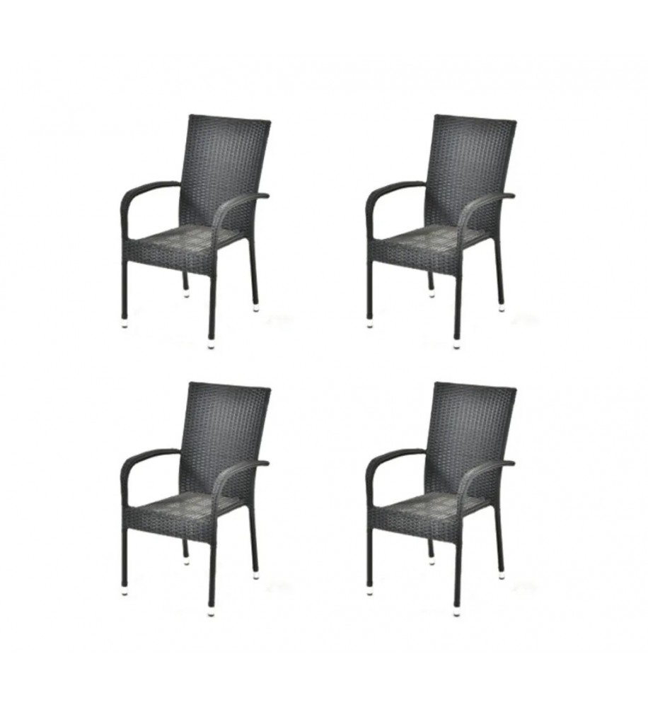 Súprava 4 ručne tkaných ratanových stoličiek, kreslá farba čierna antracit, nosnosť 150 kg. Madrid IWH-1010002, 55x65x95cm.