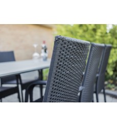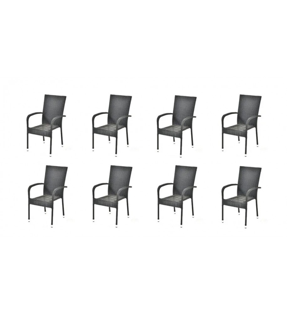 Súprava 8 ručne tkaných ratanových kresiel, farba kresiel čierna antracitová, nosnosť 150 kg. Madrid IWH-1010002, 55x65x95cm.