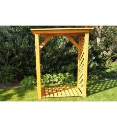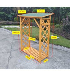 Masívny drevený stojan z borovicového impregnovaného dreva na vonkajšie použitie. Dizajnový doplnok do vašejzáhrady. Stabilný proti silnému vetru. Rozmery: šírka 115 cm, hĺbka 57 cm, výška 148 cm.