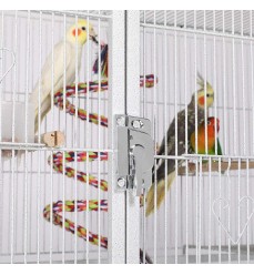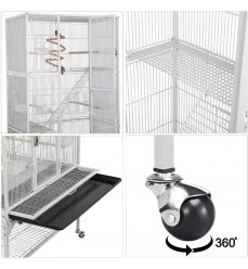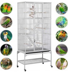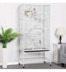 Papagáje a hlodavce môžu v klietke šplhať a lietať. Je vyrobená zo silných drôtov s hrúbkou 2, 3 a 4 mm. Voliéra má tiež výsuvnú mriežku v spodnej časti nad výsuvnou zásuvkou, ktorá zabráni úniku vašich domácich miláčikov pri čistení. Zabraňuje tiež ich prebehnutiu cez exkrementy. Výsuvná kovová zásuvka zabezpečuje pohodlné a hygienické čistenie. Voliéra stojí na 4 kolieskach s brzdami, ktoré umožňujú jej rýchle a jednoduché premiestnenie na iné miesto, môžete ju ľubovoľne premiestňovať. Klietka je odolná voči dažďu a slnku.