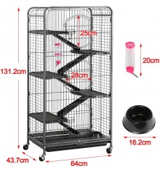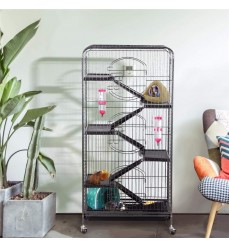 Veľká klietka pre hlodavce s 5 výškovými úrovňami a rebríkmi. Vďaka 2 cm vzdialenosti medzi mriežkami je vhodná pre potkany, králiky, fretky, činčily a iné hlodavce. Rozmery: šírka 64 cm, hĺbka 44 cm,výška 132 cm.