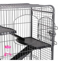 Súčasťou klietky je5x rebrík s 5x medzipodestou, 1x kŕmidlo a 1x napájačka. V klietke sú nainštalované 3 otváracie predné dvierka, takže sa ľahko dostanete do každej časti klietky.