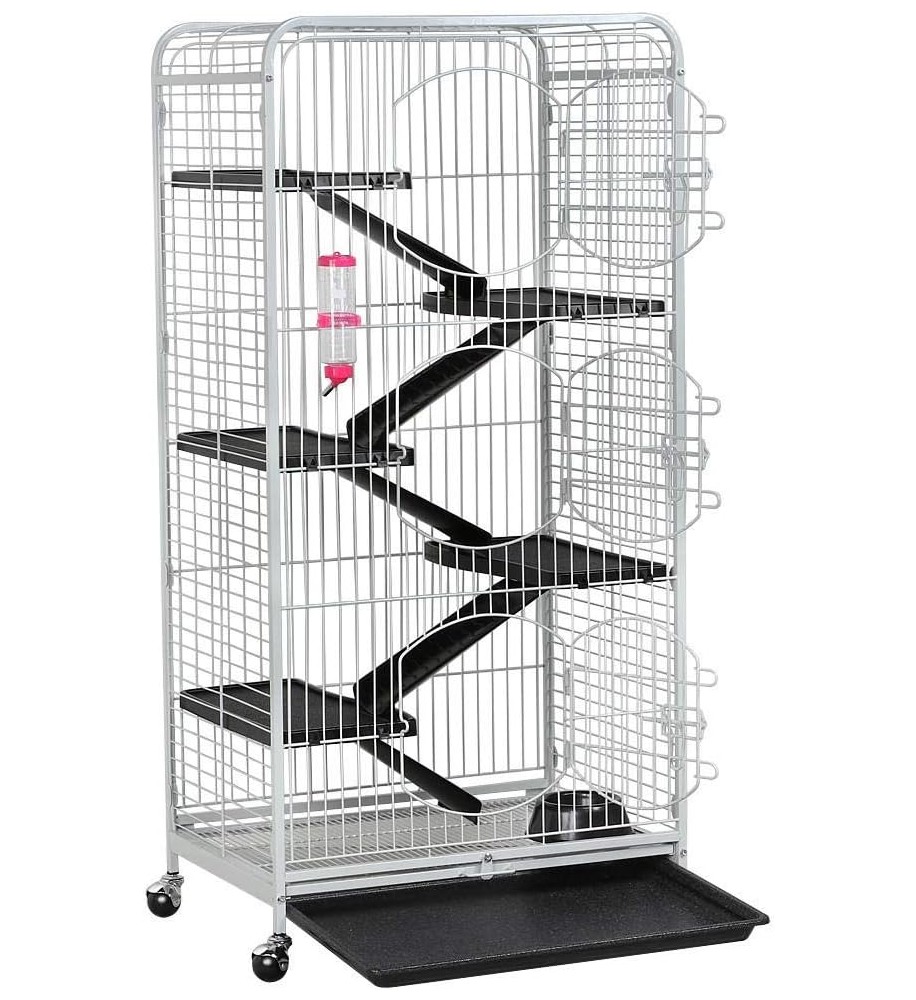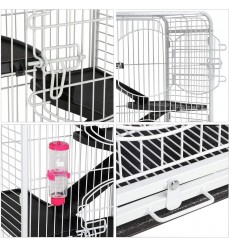 Súčasťou klietky je5x rebrík s 5x medzipodestou, 1x kŕmidlo a 1x napájačka. V klietke sú nainštalované 3 otváracie predné dvierka, takže sa ľahko dostanete do každej časti klietky.