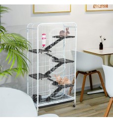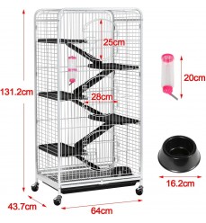Veľká klietka pre hlodavce s 5 výškovými úrovňami a rebríkmi. Vďaka 2 cm vzdialenosti medzi mriežkami je vhodná pre potkany, králiky, fretky, činčily a iné hlodavce. Rozmery: šírka 64 cm, hĺbka 44 cm,výška 132 cm.