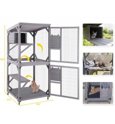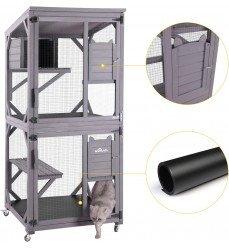 Veľká drevená voliéra pre mačky a hlodavcevyrobená z kvalitného sušeného jedľového dreva. Priestranná s krásnym sivým dizajnom. Tento výbeh skrášli vašu záhradu aj interiér vášho domu. Ponúka vyvýšené aj kryté miesta pre vaše zvieratá.