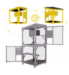Výhody: Vhodná pre chovateľov, ktorí sa rozhodli pre chov v kotercoch, je možné ju umiestniť v kotercoch, v ktorých sa nachádza: - kvalitná a dobre opracovaná jedľová konštrukcia -stabilný, vhodný do interiéru aj exteriéru -dvoje veľké samootváracie dvere, po otvorení je možné vliezť dovnútra -ošetrený nezávadným a ekologickým lakom -krásny sivý dizajn -vhodné pre mačky a hlodavce - silný pozinkovaný drôt - kvalitné pozinkované otváracie mechanizmy - navrhnuté pre dlhú životnosť - obsahuje 1x prístrešok a 2x miesto na sedenie - strecha s kvalitnými šindľami proti vode a vlhkosti - jednoduchá montáž -mobilný na kolieskach - odolný voči poveternostným vplyvom -veľký vnútorný priestor, možnosť spojenia viacerých voliér