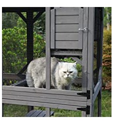 Hmotnosť všetkých prvkov vo voliére je približne 30 kg Je určená pre veľké a ťažké mačky ! (Rozmery: vnútorný domček cca 30x30x40 cm, vnútorné miesto na odpočinok cca 30x75 cm).