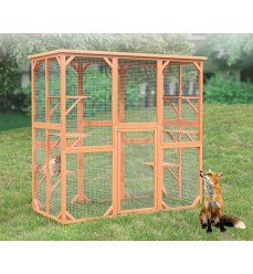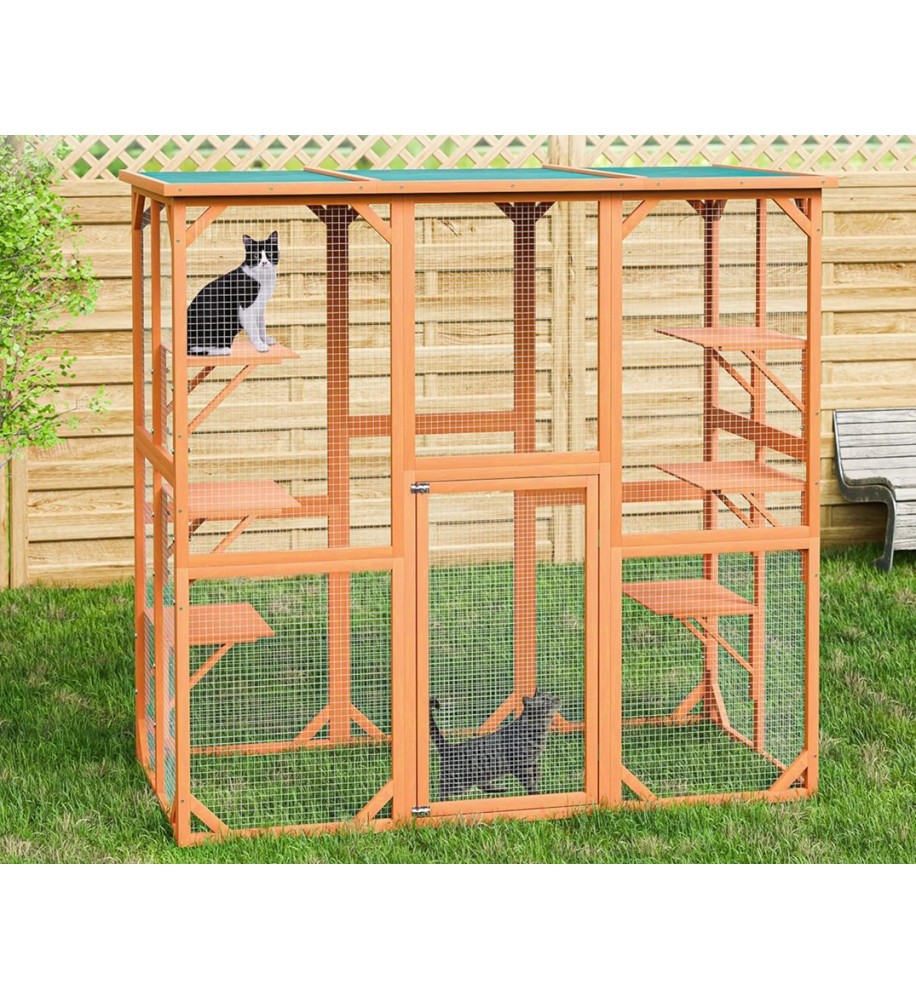 Veľká drevená voliéra pre mačky a hlodavcevyrobená z kvalitného sušeného jedľového dreva. Veľmi priestranná s krásnym dizajnom. Tento výbeh skrášli vašu záhradu aj interiér vášho domu. Ponúka množstvo vyvýšených miest pre vaše zvieratá.