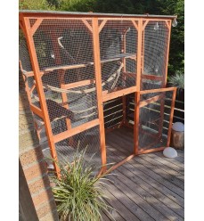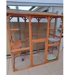 Veľká voliéra vhodná pre mačky a hlodavce, vyrobená z kvalitného jedľového dreva, veľké predné dvere(možnosť dostať sa dovnútra). Rozmery: šírka 180 cm, hĺbka 88 cm, výška 169 cm. Vhodná na použitie v interiéri aj exteriéri. Veľkosť oka 12x12 mm.