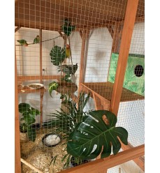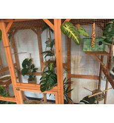 Ponúka veľký vnútorný priestor s chráneným prístreškom aj za nepriaznivého počasia. Je vhodný do vonkajšieho aj vnútorného prostredia. Voliéru možno doplniť o ďalšie príslušenstvo a hracie prvky, ktoré sa dajú jednoducho namontovať na pevný pozinkovaný drôt.