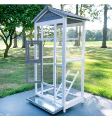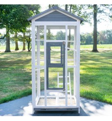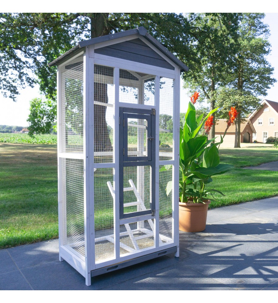 Veľká drevená voliéra, klietka pre vtáky, papagáje a hlodavce. Veľkosť L sivobiely dizajn, 83x60x160cm.