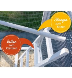 Pre papagáje môže ponúknuť veľký vnútorný priestor s chráneným úkrytom aj za nepriaznivého počasia. Je vhodná do vonkajšieho aj vnútorného prostredia. Pre hlodavce voliéra ponúkne množstvo vyvýšených plôch na hranie, rebrík na šplhanie, 3 hniezda na osadenie v rôznych výškach. Voliéru možno doplniť ďalšími hracími prvkami. Napájačku aj misku na kŕmenie možno ľahko pripevniť na pevný pozinkovaný drôt.