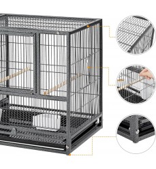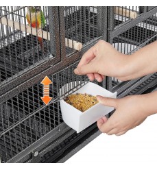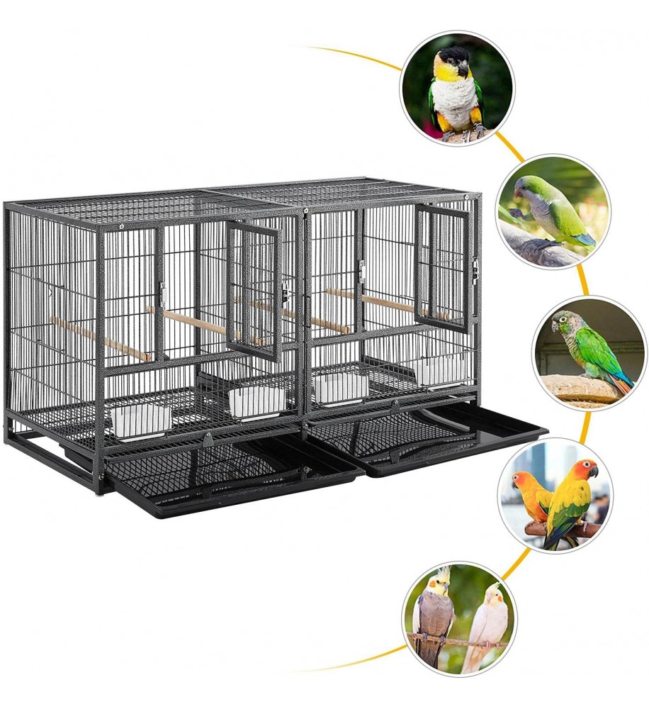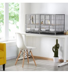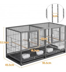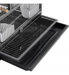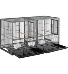 Vysokokvalitná pevná chovná voliéra pre vtáky a papagáje s pevným drôtom s dvoma vysúvacími čistiacimi plachtami na lepšiu a hygienickejšiu údržbu. Poskytuje dostatok priestoru pre vašich operených priateľov. Vhodná pre všetky druhy menších papagájov. Klietka má dostatok priestoru na pohyb. Konštrukcia je mimoriadne pevná a stabilná, vyrobená z kvalitného kovu natretého netoxickou farbou s vynikajúcou ochranou proti korózii. Vášmu milovanému papagájovi ponúka skvelý a bezpečný domov. Klietka obsahuje vnútornú deliacu priečku, ktorú možno z vonkajšej strany ľahko vysunúť a odstrániť. Celá klietka sa tak dá spojiť do jednej veľkej klietky.