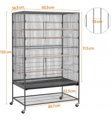 Veľmi obľúbená veľká kovová voliéra vďaka svojmu obdĺžnikovému tvaru. Silný 3 a 4 mm drôt, ktorý neprehrýzol ani väčší papagáj. Rozmery: šírka 95 cm, hĺbka 56 cm, výška 155 cm.