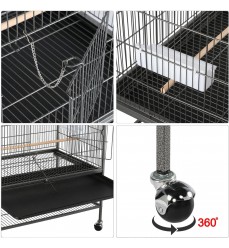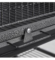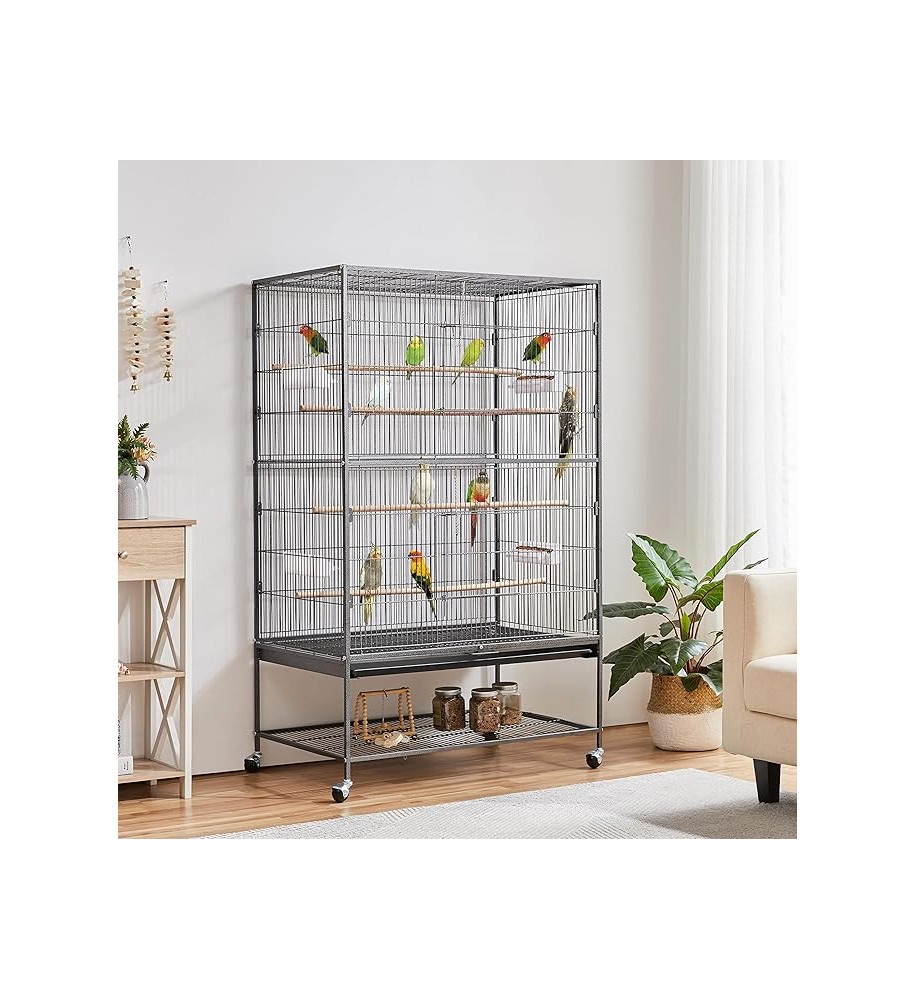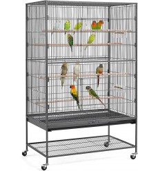 Papagáje a hlodavce môžu v klietke šplhať a lietať, rozstup mriežok je približne 1,5 cm je vhodný pre všetky papagáje. Je vyrobená zo silných drôtov s hrúbkou 3 mm (vertikálne), 4 mm (horizontálne). Voliéra má aj mriežku na spodnej strane nad výsuvnou zásuvkou, ktorá zabraňuje odletu zvierat počas čistenia. Výsuvná zásuvka z tvrdeného plastu zabezpečuje pohodlné a hygienické čistenie. Voliéra stojí na 4 kolieskach, z ktorých dve sú s brzdou, vďaka čomu ju môžete ľahko a rýchlo premiestniť na iné miesto, môžete ju ľubovoľne premiestňovať. Klietka je odolná voči dažďu a slnku. Do voliéry sa vchádza dvomi veľkými posuvnými dverami, vo vnútri sú 4 dlhé drevené bidlá, ktoré môžete umiestniť do rôznych výšok, a 4 veľké kŕmidlá alebo napájačky.