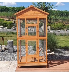 Veľká drevená voliéra pre papagáje alebo hlodavce vyrobená z kvalitného jedľového dreva. Priestranná s krásnym dizajnom. Táto voliéra skrášli vašu záhradu aj interiér vášho domu.