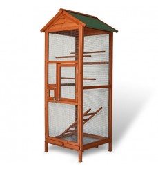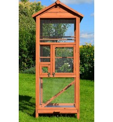 Drevená voliéra pre papagáje alebo hlodavce vyrobená z kvalitného jedľového dreva. Priestranná s krásnym nadčasovým dizajnom. Táto voliéra skrášli vašu záhradu aj interiér vášho domu. Poskytuje dostatok priestoru až pre niekoľko operených priateľov.