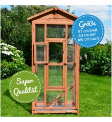 Veľká drevená voliéra pre papagáje alebo hlodavce vyrobená z kvalitného jedľového dreva. Priestranná s krásnym dizajnom. Táto voliéra skrášli vašu záhradu aj interiér vášho domu.
