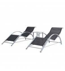 Súprava dvoch záhradných stoličiek a stola. Robustná oceľová konštrukcia s práškovým nástrekom sa vyznačuje atraktívnym dizajnom a vysokým komfortom. Výplň je vyrobená z nepremokavej tkaniny v antracitovo sivej farbe. PPodrúčky zabezpečujú ideálnu polohu na maximálny oddych. Vďaka štýlovému a modernému dizajnu je toto záhradné ležadlo dokonalým vonkajším nábytkom.